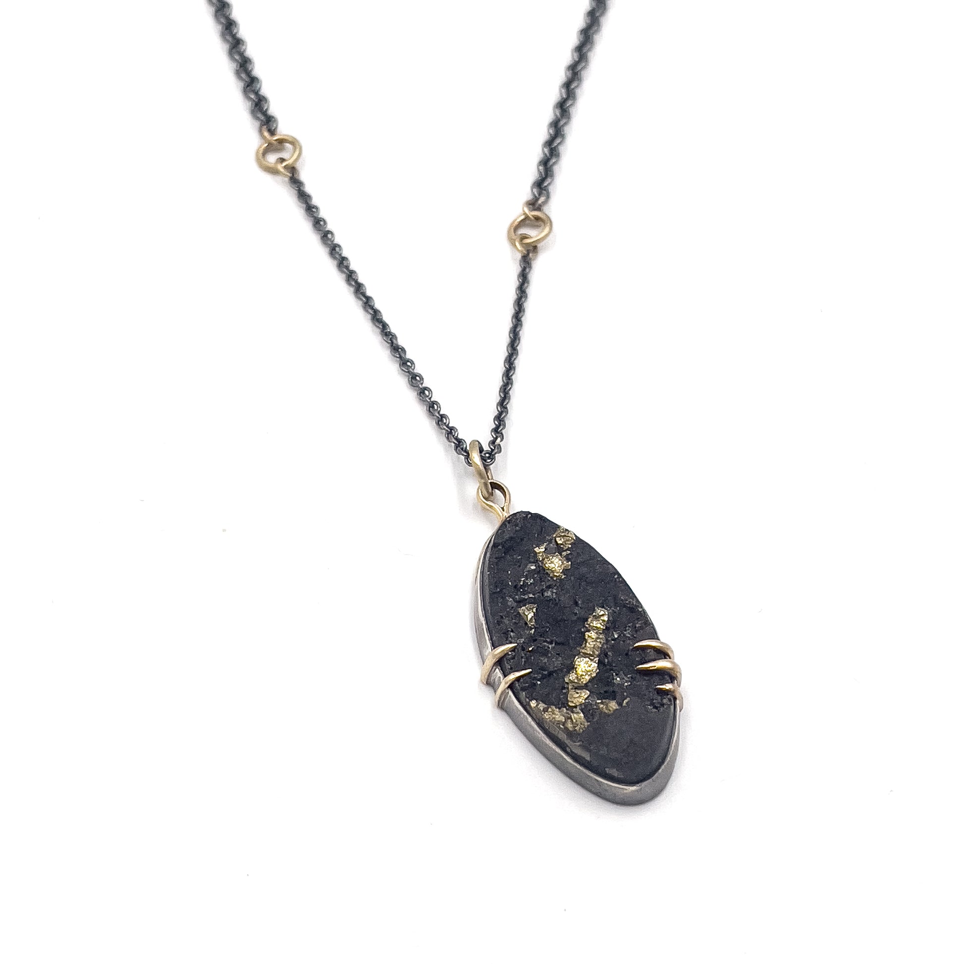 Pyrite in Schist necklace with 14k gold and sterling silver